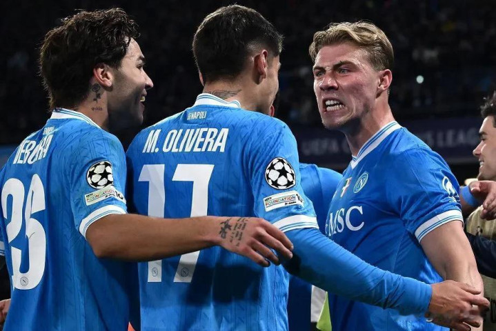 那不勒斯球员庆祝进球